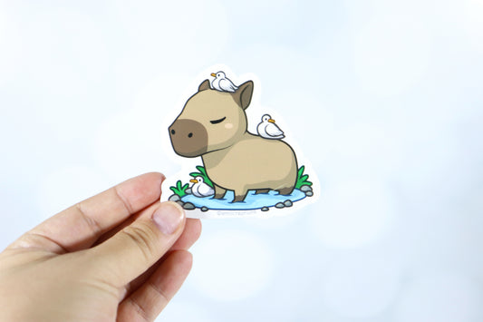 Cute Capybara and Tiny Ducks Sticker - Cute Whimsical and Heartwarming