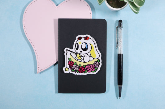 Cute Moon Bunny Sticker - Bunny on the Moon with Flowers and Star