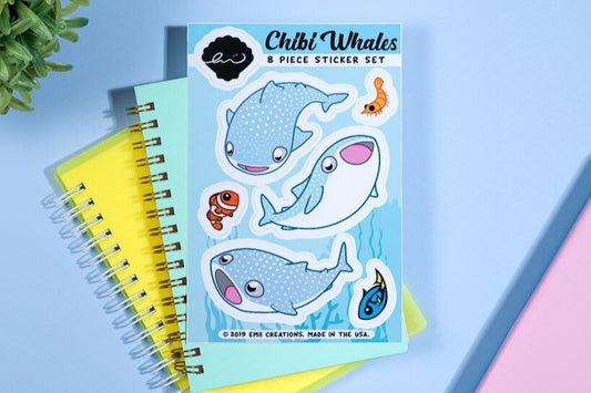 Cute Whales Vinyl Sticker Sheets - Add Some Oceanic Fun to Your Everyday Items