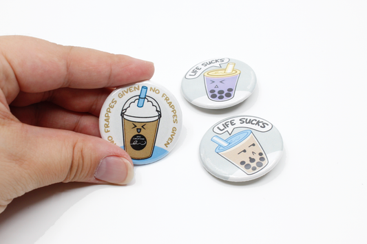 Punny Boba and Coffee Drink Pin-Back Button Set