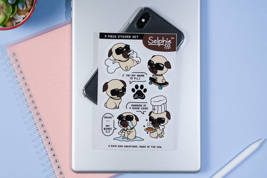 P.L. the Pug Sticker Sheet - Cool and Laid-back Dog Character