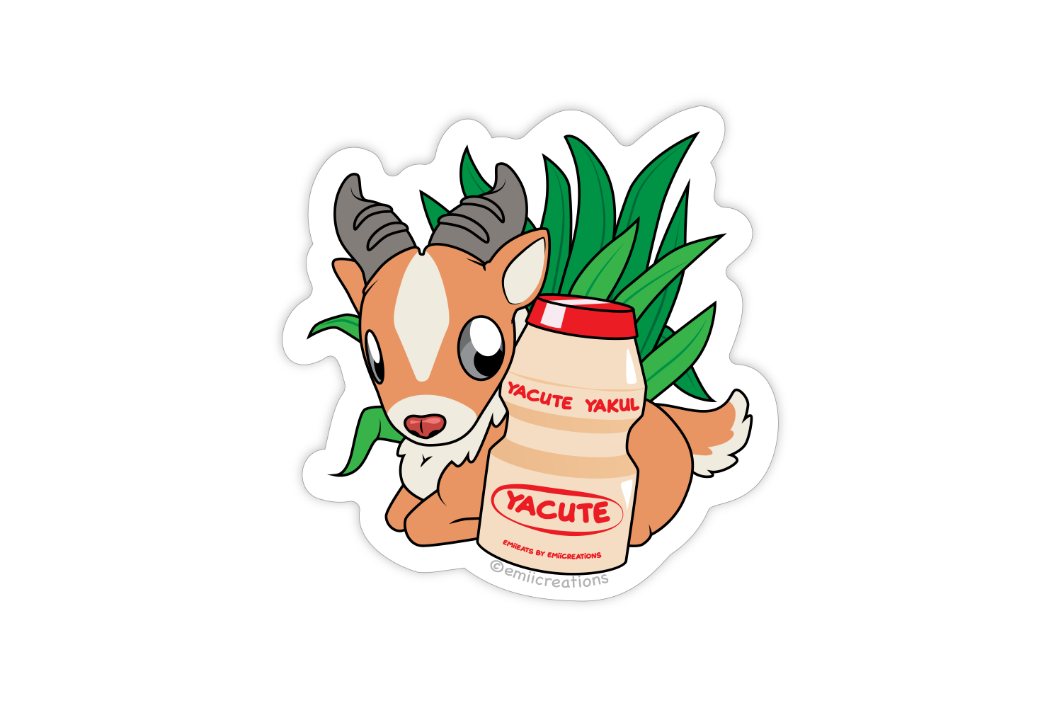 Bring calm vibes and a hint of nostalgia with our Probiotic Drink Elk vinyl sticker, featuring a gentle elk relaxing beside a classic probiotic drink. This professionally printed 3-inch glossy vinyl sticker pairs cozy woodland charm with a beloved Asian beverage from many childhoods.