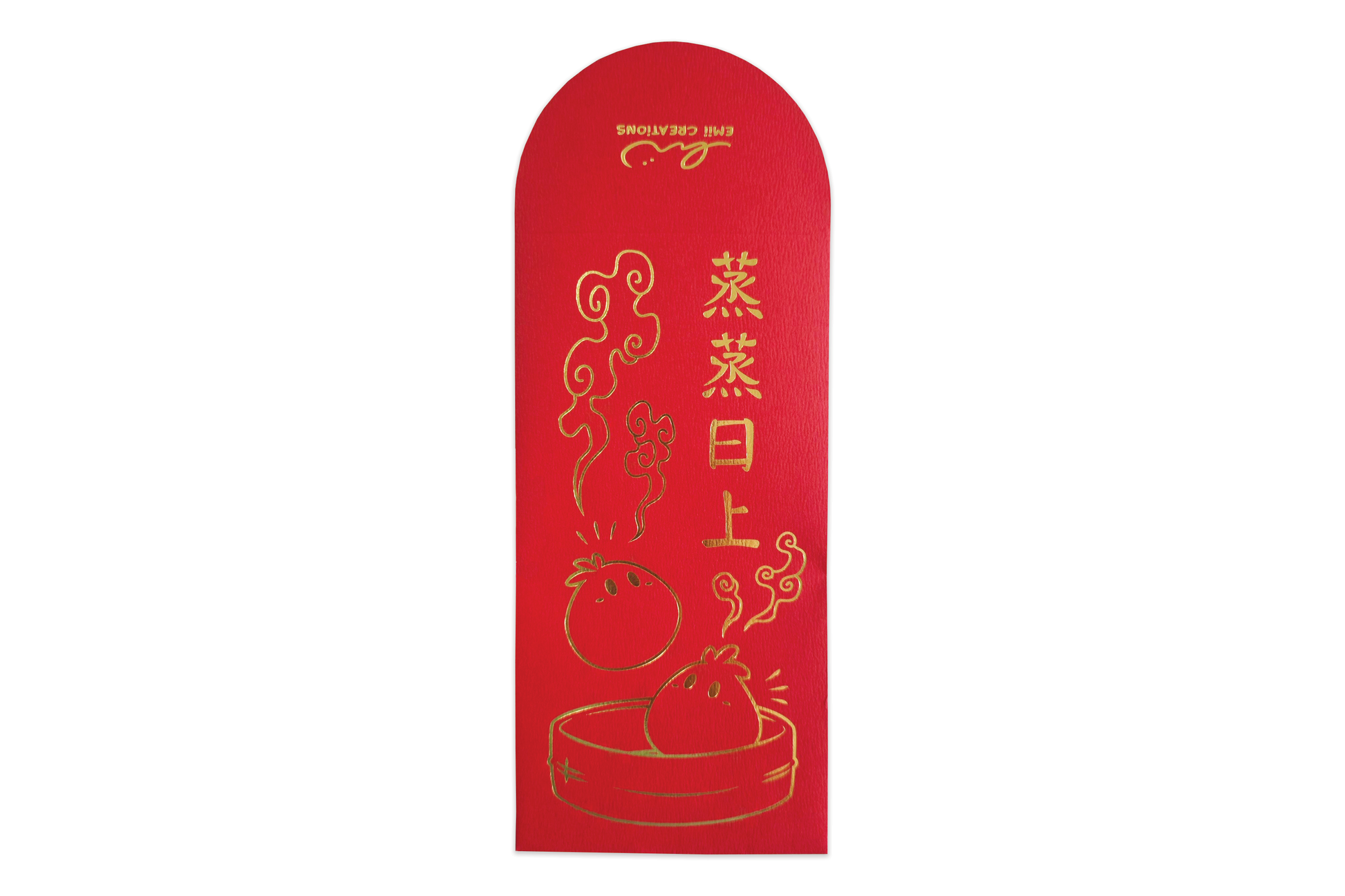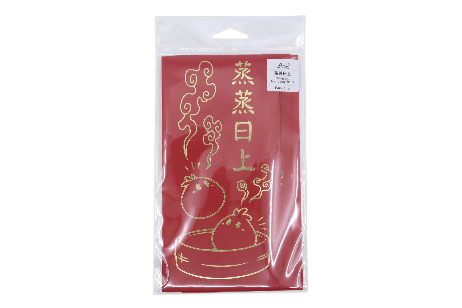 Celebrate any gifting occasion with our Bao Gold Foil Red Envelope, featuring steaming bao dumplings and text that reads “Rising and improving daily,” all rendered in shimmering gold foil. This lighthearted envelope blends food-inspired illustration with traditional materials to share encouragement and good wishes.
