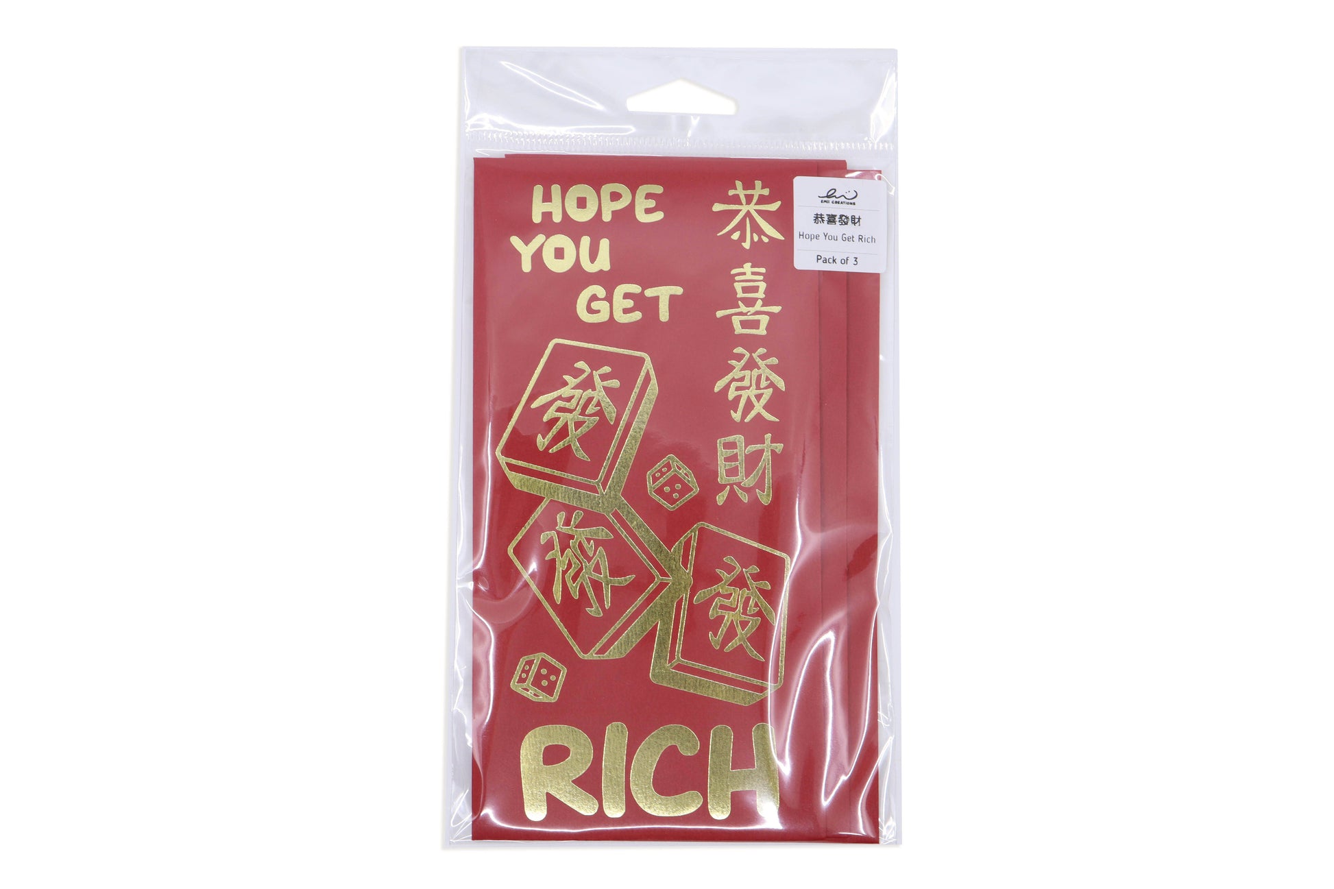 Mahjong Gold Foil Red Envelopes - Set of 3